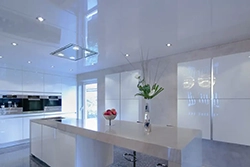 Глянцевые натяжные потолки – могут стать изюминкой неординарного интерьера. Они прекрасно впишутся в рамки любого стиля: от классики до арта, нео, техно. Такая фактура хорошо подойдет для помещений нестандартной формы, мало освещенных комнат и комнат-пеналов. Глянцевый потолок по цене мало отличается от матового, поэтому если вам нужен потолок в гостиную, то выбирайте глянец – не прогадаете: ваша комната будет визуально смотреться просторнее и ярче.