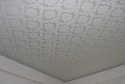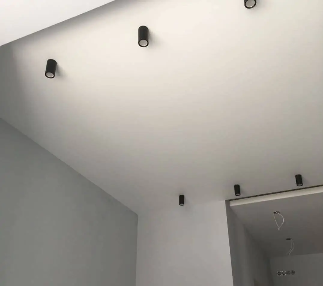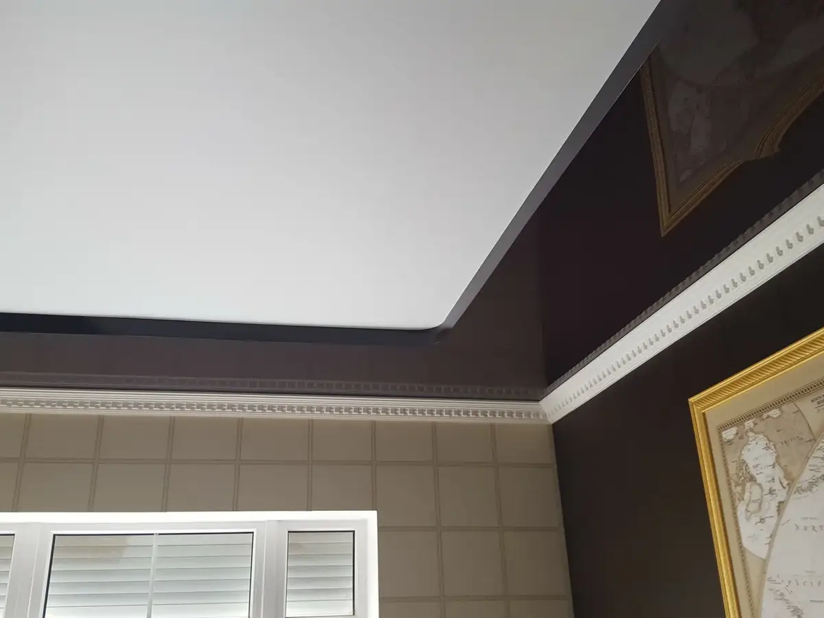 Тканевый натяжной потолок – практически не отражает свет и не отзеркаливает обстановку помещения. Такое покрытие не будет излишне привлекать к себе внимание, вызывать раздражение слишком яркими бликами или неуместным блеском. Такие потолки идеально подойдут для оформления спален, а также для детских комнат.