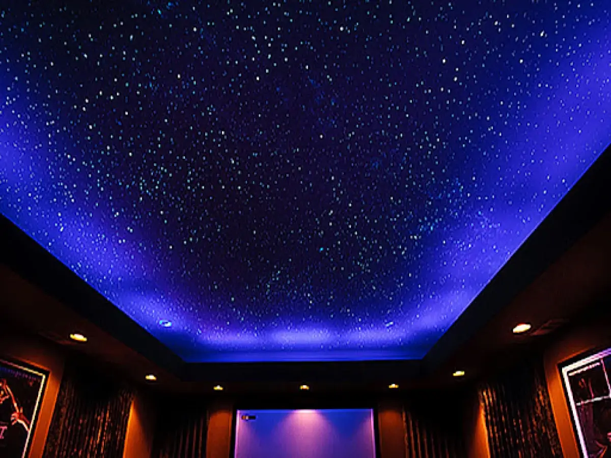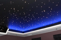 Натяжные потолки звездное небо отлично подходят для детской и взрослой пальни. Мерцающие огоньки в виде светодиодной ленты или маленьких точечных светильником создают уютную атмосферу и помогают расслабиться